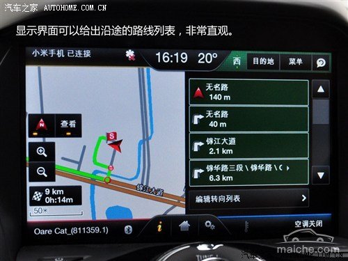 显示界面可以给出沿途的路线列表,非常直观。