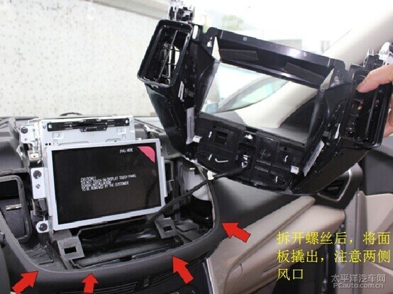 拆开螺丝后,将面板撬出,注意两侧风口