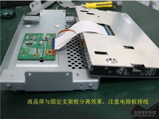 液晶屏与固定支架框分离效果,注意电路板排线