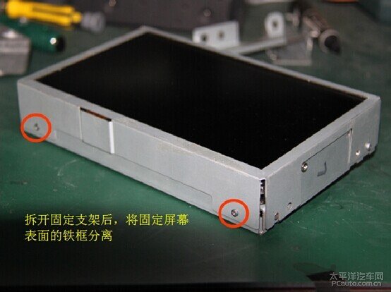 拆开固定支架后,将固定屏幕表明的铁框分离