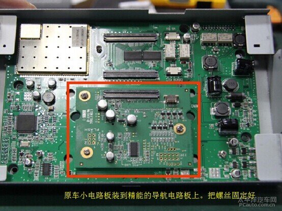 原车小电路板装到精能的导航电路板上,把螺丝固定好