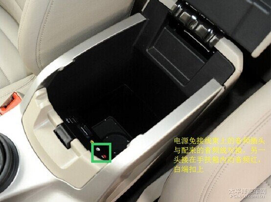 电源免接线上的音频插头与配来的音频线对接,另一头接在手扶箱内的音频上,白端扣上