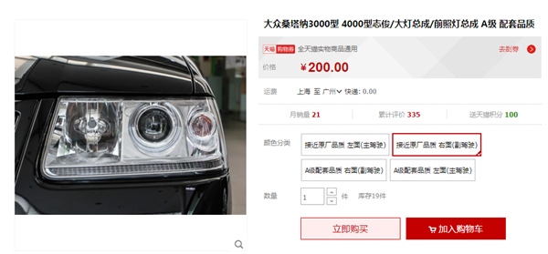 大众桑塔纳2000前大灯总成,桑塔纳2000前大灯多少钱