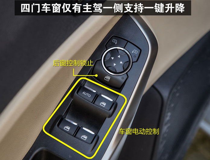 - 福睿斯一键升降在主驾驶员一侧的车窗控制区域,有Auto英文标识,配有车窗一键升降的汽车车窗升降控制开关有两档,第一按键位置和普通...[详细]