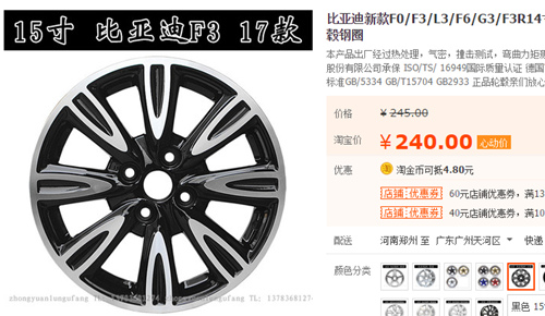 比亚迪f3铝轮毂多少钱,比亚迪f3轮毂尺寸
