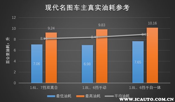 1.8L、6档手自一体的名图车型工信部综合工况油耗6.7-7.0L/100km
