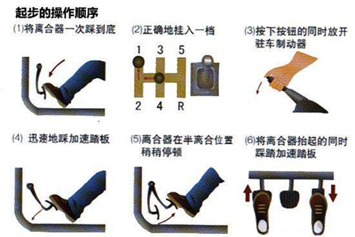 对于手动挡的车,起步时挂上一档,离合器要踩到底,右脚放到油门上准备好。开始起步时,左脚的离合慢慢的抬到将近一半,当感到车辆有抖动的意思就及时松开手刹,然后轻轻点一下油门,车想往前移动时慢慢松开离合,然后再加上一点油门即成功起步了。