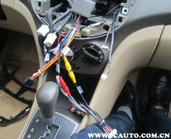 4、取下手套箱,GPS线、倒车视频线、内置USB线(可以放在手套箱里面当充电器用)从手套箱塞进去。导航带的音频线,电源线、倒车视频线、视频检测线跟原车电源线接一起。