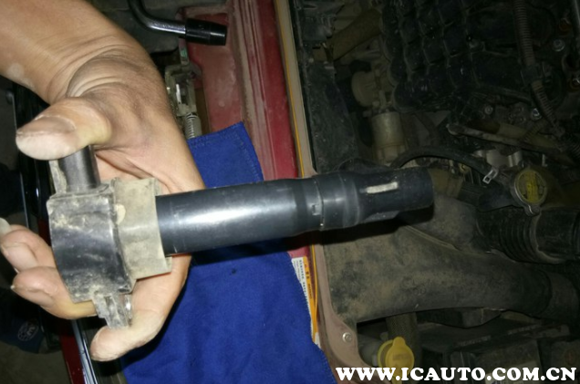 5、拧下螺丝后轻轻拔出火花塞和电源接触器。