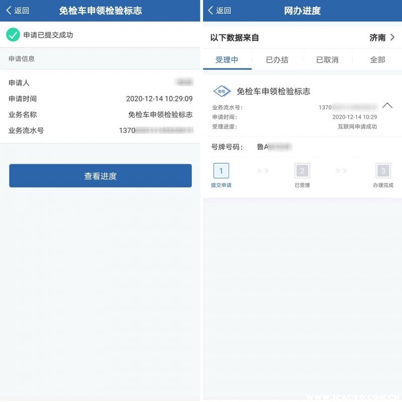4、申请提交成功,点击查看进度,可以实时查看网办进度。