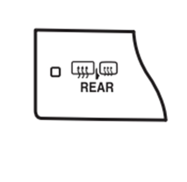 2.带外后视镜除雾器的车辆,使用除雾器为后车窗除雾,并除去外后视镜上的雨滴、露水和冰霜。 按下下图按钮, 一段时间后除雾器将自动关闭。