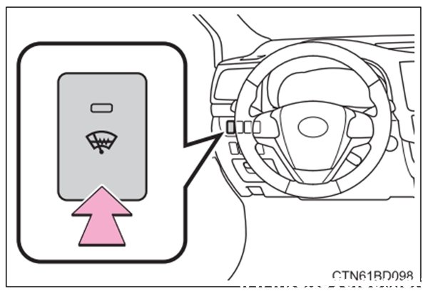 此装置用于防止风挡玻璃和刮水器刮片结冰。按下下图此开关可打开/关闭该系统。风挡玻璃刮水器除冰器工作时,该指示灯点亮。一段时间后风挡玻璃刮水器除冰 器将自动关闭。