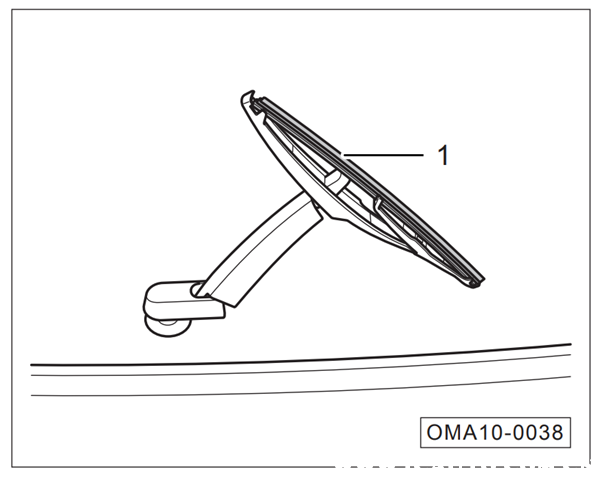 2.按上图所示方法拉动雨刮片“1”即可将其拆下。