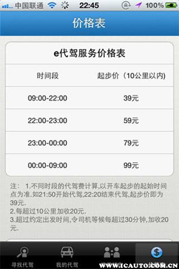 注:(1)不同时间段的代驾起步费以实际出发时间为准。