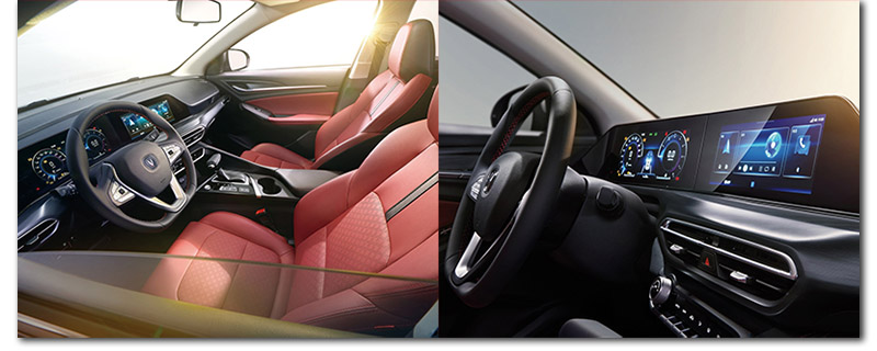 整车内部的设计也是全新的设计语言,抢眼的中控双联屏将科技氛围拔高了一个档次,黑红配色更是营造出十足的运动氛围,动不动就会激起人的驾驶欲望。