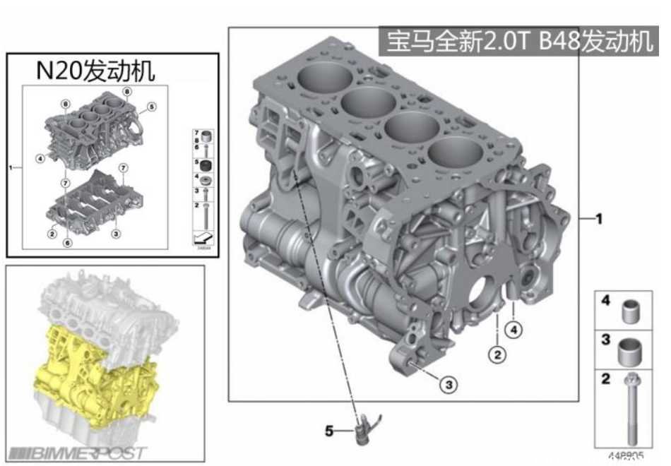 高集成度:与N20系列发动机相比,B48的缸体从分体结构改为了一体式结构;进气管的水冷式中冷器与进气歧管集成在一起;涡轮增压器与排气歧管集成到一体。