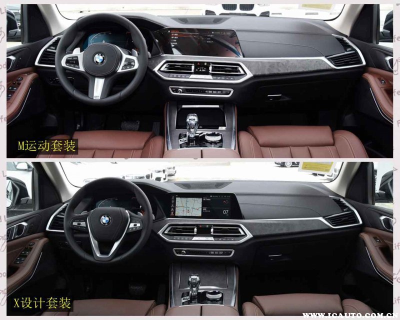 内饰方面,X设计套装和M运动套装主要是方向盘的造型有所不同,而2020款与2019款相比则没有发生变化。方向盘都是真皮包裹,并且提供电动的四向调节以及拨片换挡。