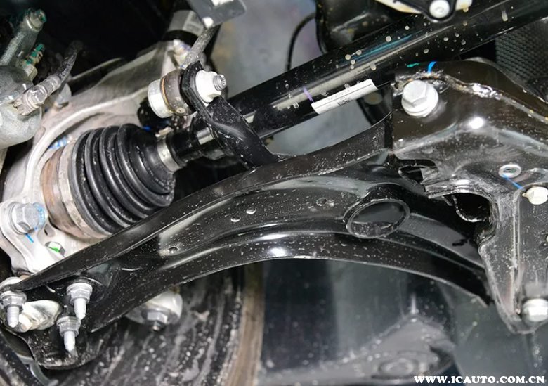 奥迪TT的后悬架同样是MQB平台标准的三横臂一纵臂的结构,其中最为显著的特征就是其纵臂实际上是一块钢板而不是连杆。在多连杆悬架当中,奥迪TT的这种悬架应该说是入门级别,整体的结构比较清晰工作原理也很简单。