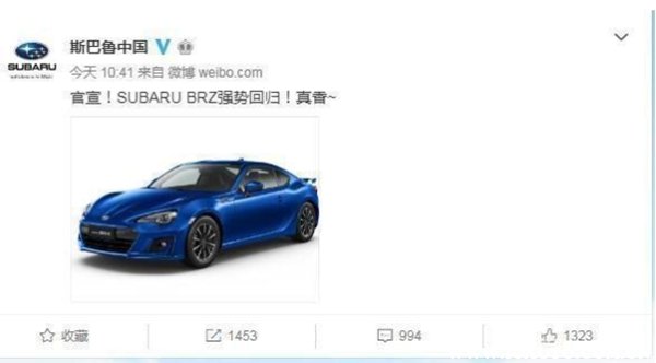 时间来到2019年,斯巴鲁BRZ将重返中国市场的消息不断传开,斯巴鲁官网微博还晒出BRZ的订购协议,引来无数斯巴鲁铁粉点赞和转发。同时有消息称,斯巴鲁正单独对新一代BRZ进行研发,有望采用纵置后驱平台打造,预计2021年正式发布。