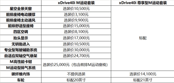 另外对于购买新款X6纠结要不要上尊享型的消费者,可以参考两者之间的配置对比图,两款车型的售价刚好相差10玩元,但连着的配置就相差比较多了,而买次顶配来选择的话费用已经超过了15万元了;简单的说表格中85%的配置都是自己钟意或者有需求的,直接上尊享型会更划算,而如果只是喜欢其中的几个配置建议买运动套装再选配要更划算些。