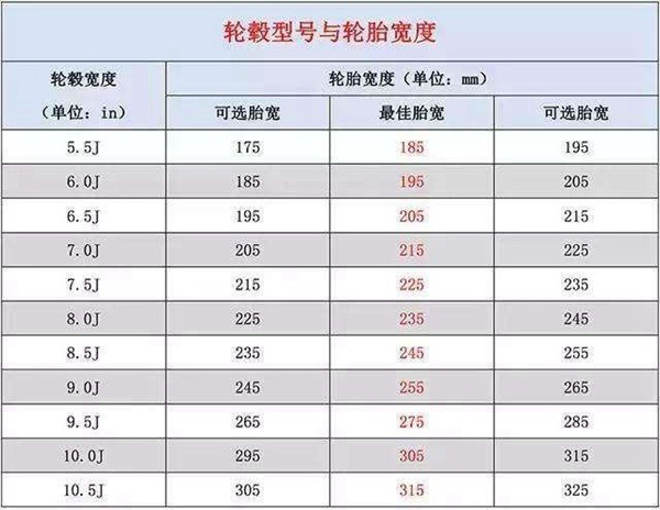 轮毂上的宽度用J值表示,轮毂的宽度会影响到轮胎尺寸的选择。如果两款轮毂之间的直径相同但J值不相同的话,也不能使用同一款轮胎。