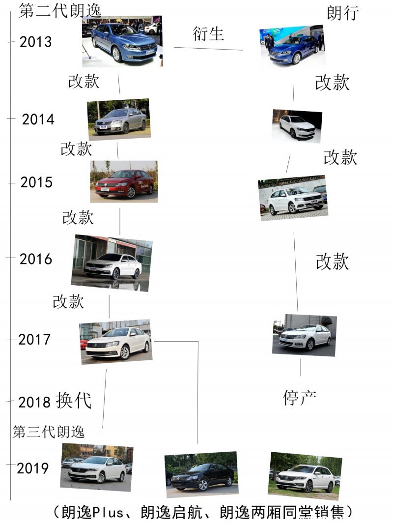 2018年朗逸从第二代换到第三代,正常来说车型换代之后上一代就会停产,但朗逸没有这么做,它不仅推出了新的第三代朗逸Plus,而且还继续推出第二代朗逸,只是这个第二代朗逸换了个名字叫做朗逸启航版。当时的朗逸Plus、朗逸启航、朗逸两厢都写着是2019款朗逸,大众的这一波操作,搞得当时有部分消费者将这个朗逸启航版当成了朗逸Plus,导致了有人质疑19款朗逸是不是朗逸Plus。