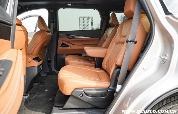 作为一款中大型SUV,全新英菲尼迪QX60的长宽高分别为5127*2005*1767MM,车身轴距为2900MM,车内采用2+2+3的座椅布局,空间的表现很出色。第二排座椅有一键式滑动的功能,方便乘客进入第三排,在第三排座椅启用时后备箱仍然有不错的储物空间。