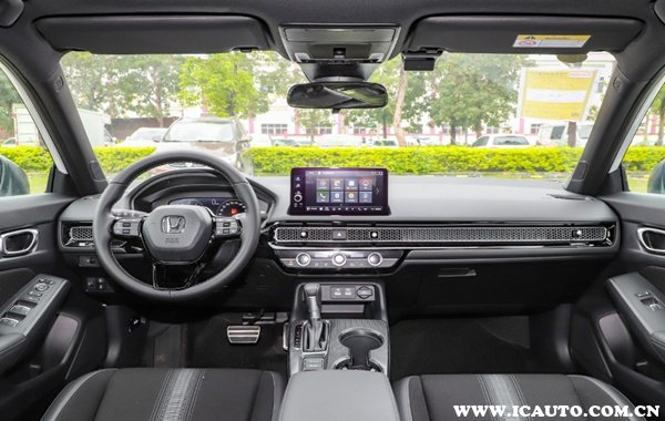 内饰方面,新思域采用了全新设计的三幅式多功能方向盘,中控屏幕也采用了悬浮式的设计,内置的Honda CONNECT 3.0智导互联系统,这套系统比较实用;空调出风口同样采用了贯穿式设计,采用的金属网点缀使得内饰更有质感。