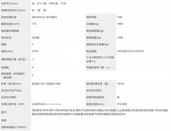 车尾处的贯穿式尾灯设计略有改变,弱化了两侧的弧度感,使得车尾更显凌厉,并且配备了醒目的双边方形排气设计。新款哈弗H6的车身尺寸达到了4711/1940/1730mm,轴距为2738mm。