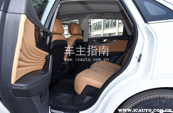 在驾乘体验方面,前排主副驾驶座椅具备电动调节功能,并带有通风和加热功能。座椅由皮革和Alcantara材质混搭,能够良好地承托身体。1.74米身高的乘客坐在后排,头顶和腿部空间都十分充裕,唯一需要注意的是地板中间略有凸起。