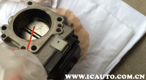 3、取下节气门总成,带上手套,用节气门清洗剂进行喷洗作业;