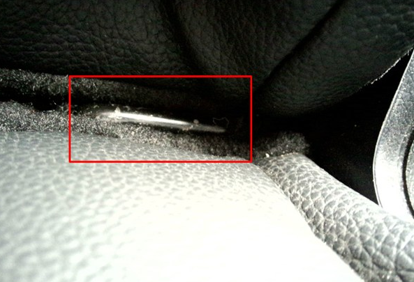 在左后排座椅和靠背的连接处可以找到黑色铁杆
