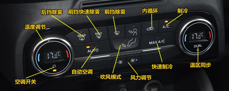 福特福克斯空调按钮图解,福克斯空调除雾和暖风开启方法