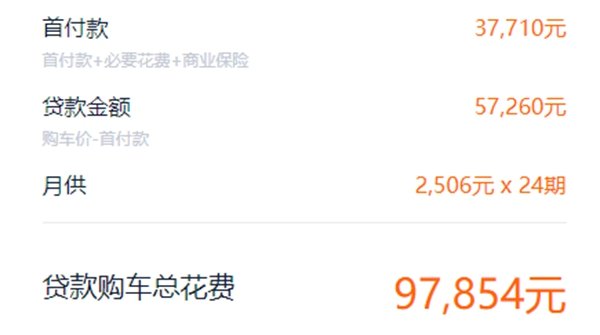 而如果是全款落地价格的话,包括车辆购置税、车辆保险、上牌费以及其它手续费用,全款落地的的价格是94613元,和贷款相比少了3241元,毕竟少了贷款手续费以及后续产生的利息费用。
