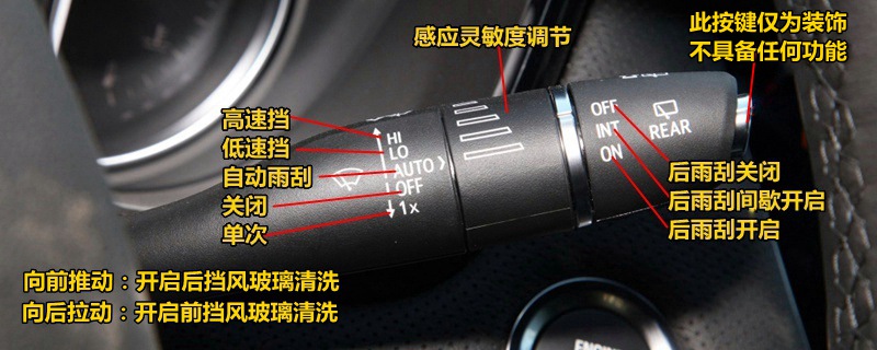 ③HI为高速挡、LO为低速挡。适用于不同的雨天环境,根据实际行车环境做出调整。