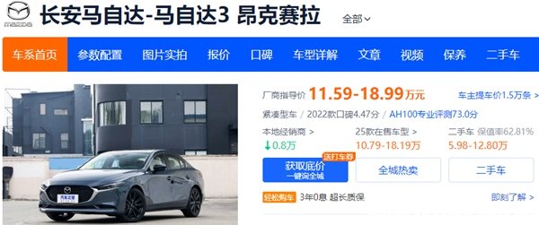 昂克赛拉是马自达推出的一款紧凑型家用轿车,该款车型经过了几十年的迭代更新,积攒下了不错的口碑,它的前世今生叫做“马自达323”(简称马3),回顾昂克赛拉的发展历史,许多车友们都对这款车型给出了可靠、耐用、操控好等较好的评价,恰巧可靠和耐用这两者是影响保值率的重要因素,因此昂克赛拉保值率这么高也无可厚非了。