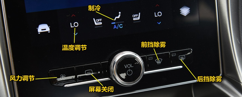 前、后挡风玻璃分别设置对应的按键,按下对应的按键,即可开启加热除雾。