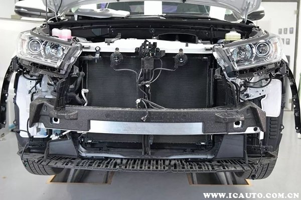 很多朋友误以为汉兰达的前防撞梁非常厚,其实是在边上安装了一块块铝合金加强件。有人会问它的作用是什么?其实答案很简单,为了“应试教育”,也就是25%面积的偏斜碰撞测试。一旦发生小面积碰撞时,这个加强件不仅能增加强度,还能降力卸掉一部分,让车辆偏移减少损伤,达到提高分数的目的。