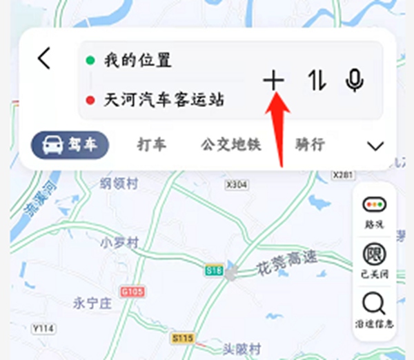 2、在始终点搜索栏右侧找到一个加号,点击它以设置途经点。