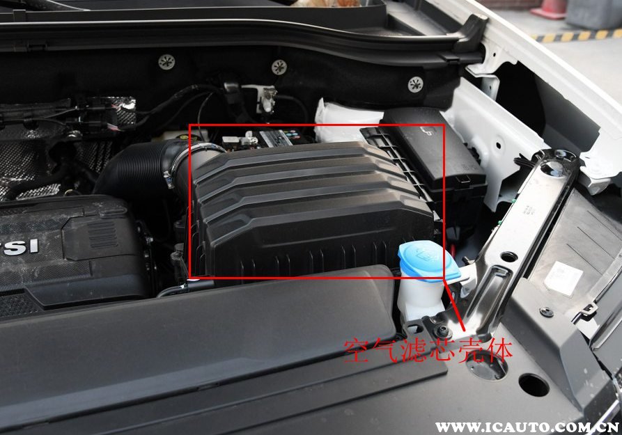大众途昂的空气滤芯位于发动机舱的蓄电池后方,需要打开机盖,在驾驶员侧找到蓄电池的后方,空气滤芯是一个黑色塑料盖。
