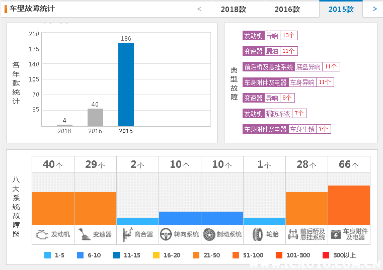 从车质网提供的数据看到,旧款启辰t70的质量投诉还是比较多的,主要表现为发动机异响、变速箱漏油、底盘异响等等,具体请参照图片。之后2016款的故障投诉是有了一定的下降,但是前期过多的质量问题是很容易影响到后面改款的口碑和销量。
