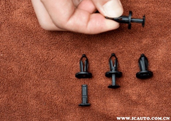 2、将副驾驶手套箱下护板拆掉,它由胶钉固定,用一字螺丝刀塞到胶钉中间圆形的头的缝里撬一下将胶钉撬出来,然后就可以将整颗胶钉拔出来。再装回去时间胶钉塞到钉孔,然后将圆形的头摁进去就可以了。
