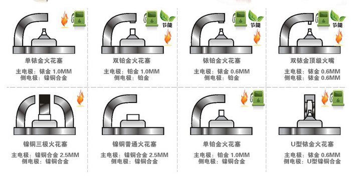 汽车火花塞中心电极先前大都是使用了镍合金,这种金属由于价格便宜被广泛用于低端火花塞上,这种火花塞的设计寿命一般为2万公里,为了阻止汽车火花塞间隙快速变大,给中高端汽车的火花塞中心电极和侧电极使用了硬度很大的铂金或者铱金,这样火花塞寿命就会延长到6-8万公里。