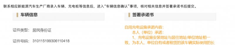 6、联系相应新能源汽车生产厂商录入车辆、充电桩等信息后,进入“车辆信息确认”事项,核对相关信息并签署承诺书后提交;