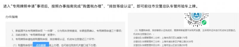 8、进入“专用牌照申请”事项后,按照办事指南完成“购置税办理”、“排放等级认证”,即可前往市交警总队车管所验车上牌。