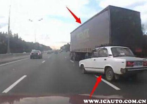 尽量不要与大型车辆并线行驶,要么加速超越它们,要么减速保持一定距离。同时,不要横跨两条车道行驶,以免被追尾。