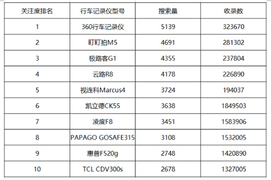 行车记录仪记录仪品牌间没有绝对的好坏,每个厂商能生存下来说明这家厂商的产品都有他独特的生存之道。下面我们从记录仪销量和搜索量排出了前十的产品,毕竟消费者的眼光都是雪亮的。