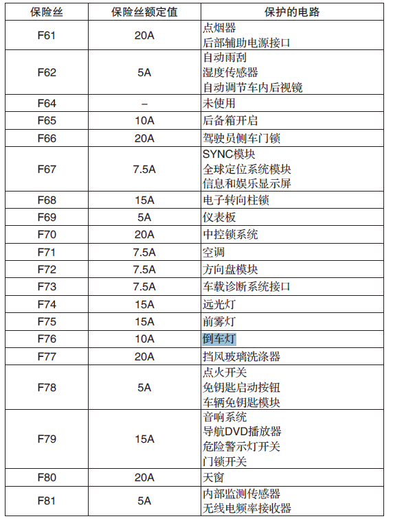 福特福克斯倒车灯保险丝位置,福克斯保险丝盒