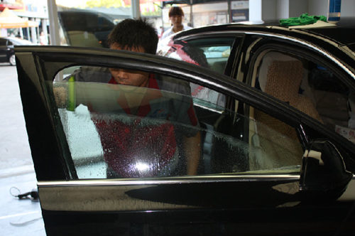 专业贴膜汽车注意事项1、汽车在进行了贴膜以后,如果是晴天,那么三天之内不能升降玻璃。如果是阴天下雨,那么一个礼拜不能升降玻璃!2、汽车在进行贴膜后,30天内都不要能启动除雾电热丝。3、如果膜的边缘出现起泡情况,车主应该在24小时内将车主开到施工点进行修复。4、汽车在进行贴膜后30天之内,不要将任何吸盘式物品吸附在膜上。5、不要将任何带有粘性的标签直接贴在膜上,年检标是可以使用店内的静电贴的。6、贴膜后,如果膜与玻璃之间出现雾状水雾的情况是正常现象,车主不用担心,一般在1-2个月会自然干透。7、前档在贴膜后,前档的除雾风口在一个礼拜内千万不要对着前档吹。专业汽车贴膜步骤专业贴膜的工具和原料有汽车膜创模安装液、剪刀、美工刀、烤枪、刮板、浴巾和椅套、鹿皮巾、棉布。步骤:1先将两个大浴巾平铺在汽车的前机盖上和仪表上,并且要将椅套套上,用保鲜膜裹紧,防止污染。2必须要完完全全,彻彻底底的清洗汽车的每一块玻璃,特别要注意玻璃的顶部。3在车窗玻璃外表面上喷洒少量的窗膜安装液,然后将软质模具轻轻覆盖在上面,在小心的滑动定位后,进行剪切。注意剪切操作时,必须要使汽车膜牢牢的贴在玻璃上。再按照模具进行对窗膜的剪切。4再次将窗膜安装液均匀的涂抹在玻璃上,进行贴膜。5由于基本上所有的车窗玻璃都不是完全平整的,所以可以采用烤枪把窗膜精确的收缩定型在极大部分车窗的复合曲面上。这样可以消除在曲面上出现的皱折等。6外窗贴完膜后,接下来就是要进行内部贴膜了,和外窗一样先将窗膜安装液均匀喷洒后,再进行贴膜。7在每片窗膜都确立了其最终位置后,就应该立即在窗膜表面再次均匀的喷洒安装液,润滑其的表面。之后用长三角塑料刮板轻轻的赶水。8最后用棉布仔细的将车窗边缘挤出的水轻轻吸出。贴膜就完成了。小编结语现在各位车主心里都应该知道怎么贴膜了吧,当然您可以自己试试,不过小编建议还是去4S店哦,他们更加专业!