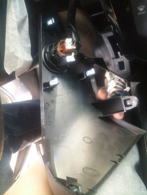 1、拆右侧仪表台挡板,然后拆掉出风口螺丝,拆下出风口(基本靠暴力拉出来)。拆下碳纤维样式饰板,直接拉出来就行了。